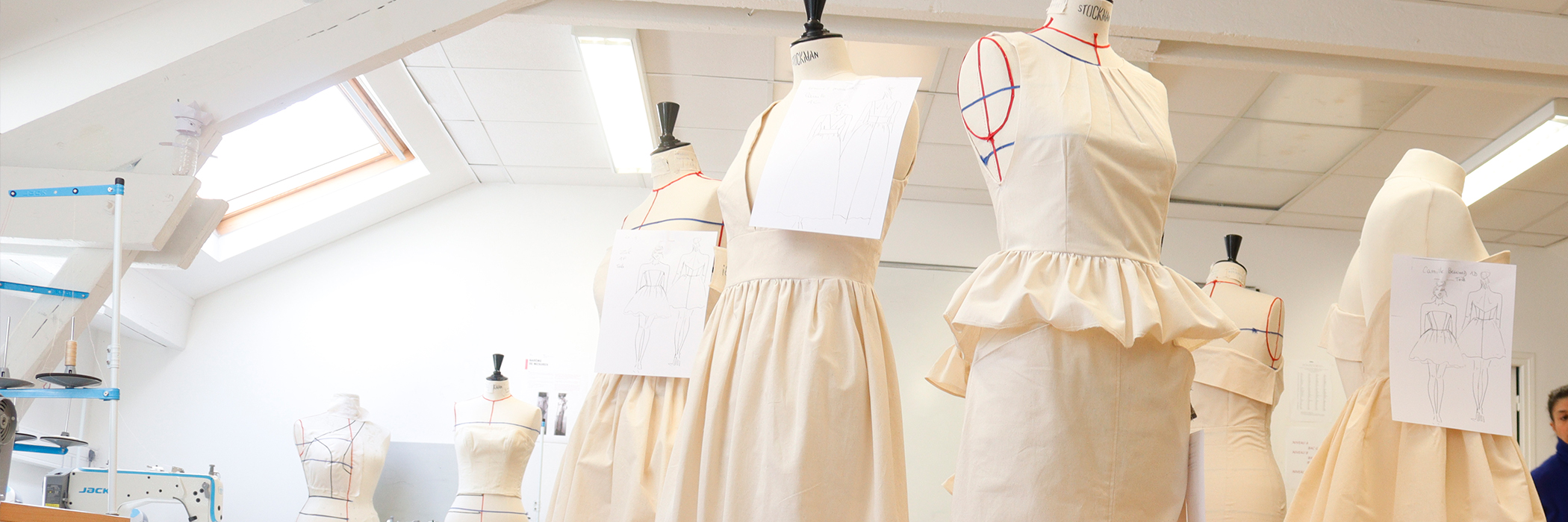 Pour les formations Mode, l’école met à disposition des espaces dédiés, pensés comme de véritables ateliers professionnels :
